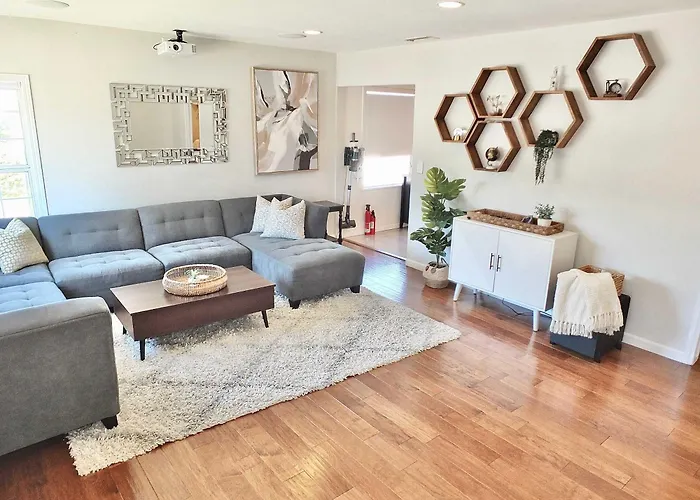 Self-catering faciliteiten in deze accommodatie zijn onder andere een ingerichte kitchenette met een koelkast, een oven en een kookplaat. Bellflower Breeze - Charming 3 Bdr In Long Beach villa ligt in de buurt van Appu's Cafe, waar gasten kunnen genieten van verschillende maaltijden. Bellflower Breeze - Charming 3 Bdr In Long Beach villa is gelegen op 5 minuten wandelen van Woodruff & Wardlow bushalte en binnen 30 minuten rijden tot Norwalk/ Santa Fe Springs Metrolink treinstation.